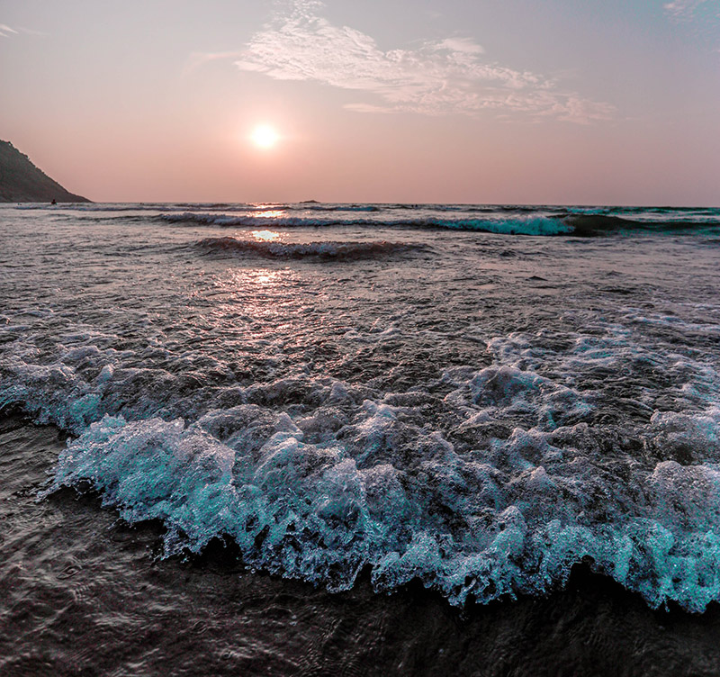 Known for its 'Om' shape, this beach offers golden sands and water sports.